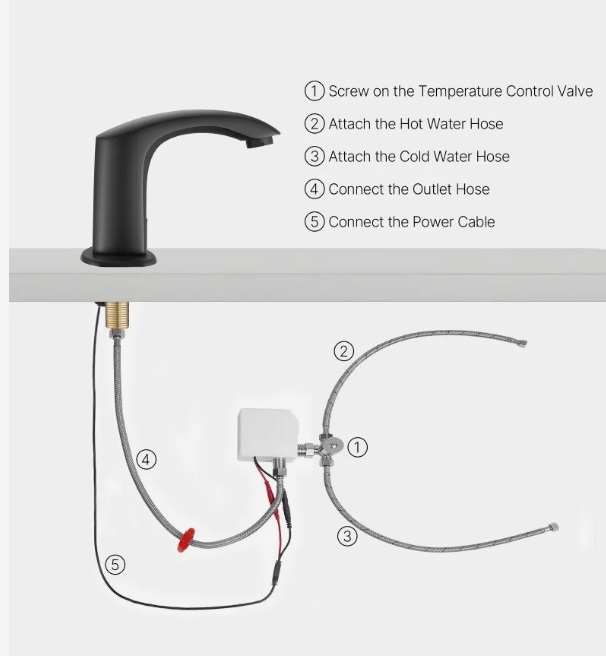 Nastaviteľná teplota vody: Ovládajte požadovanú teplotu vody pomocou zmiešavacieho ventilu umiestneného pod umývadlom. To vám umožňuje jednoducho nastaviť medzi nastavením studenej/teplej vody, čím zabezpečíte personalizovaný a pohodlný zážitok z umývania.