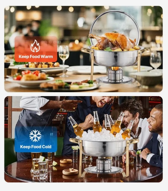 Udržujte teplotu jedla: Udržujte jedlo na ideálnej teplote na servírovanie s touto ohrievacou misou. Je navrhnutá tak, aby udržiavala teplotu alebo chladenie jedla, a je ideálna na prípravu rôznych pokrmov počas vašej akcie.