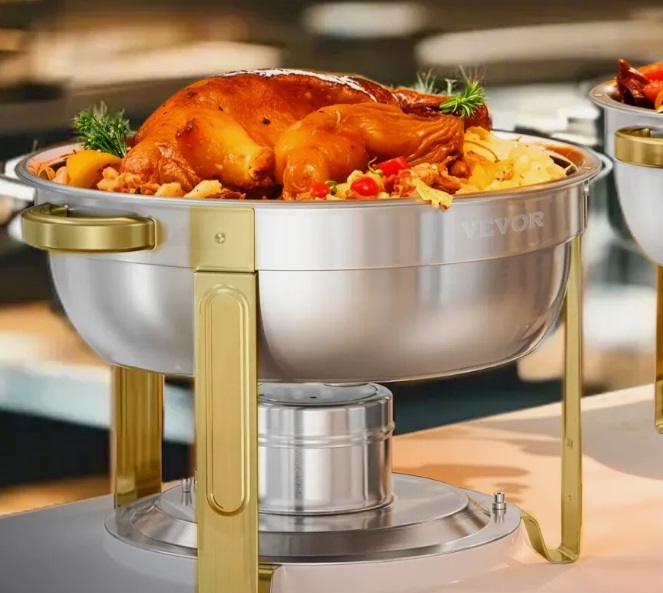 Elegantná zlatá povrchová úprava: Luxusná zlatá farba tohto ohrievača jedál dodá každej udalosti nádych elegancie. Či už ide o bufet, večierok alebo svadbu, tento elegantný dizajn vylepší prestieranie a umocní atmosféru.