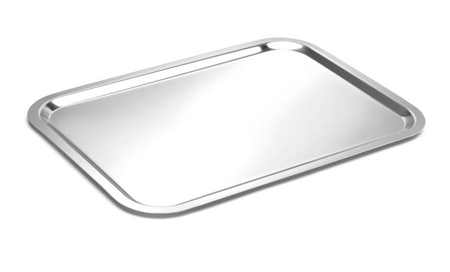 Tácka vyrobený z nehrdzavejúcej ocele s profilovaným okrajom.