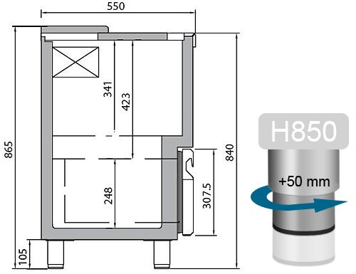 Vnútorný priestor je vybavený odtokom rozmrazenej vody