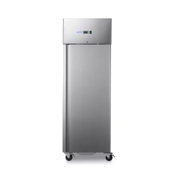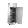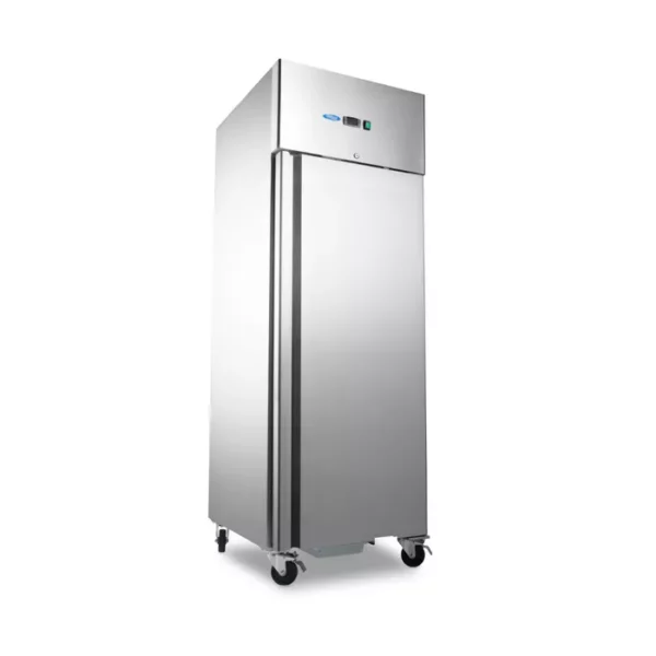 Dobrá chladnička je prínosom v každej profesionálnej kuchyni. Čerstvé suroviny a jedlo, ktoré už bolo pripravené, je potrebné schladiť, aby dlhšie vydržalo. S touto výkonnou 600 l chladničkou môžete enormne zvýšiť chladiaci výkon vášho stravovacieho zariadenia. Ak niekto zabudne zavrieť dvierka, nie je to žiadny problém, pretože táto chladnička je vybavená samozatváracími dvierkami s antibakteriálnym gumovým tesnením. Chladničku je tiež možné uzamknúť pomocou vstavaného zámku, ktorý je dodávaný s dvoma kľúčmi. Vďaka zaobleným rohom na vnútornej strane sa tento spotrebič tiež ľahko udržiava v čistote. Vnútri nájdete energeticky úsporné LED osvetlenie, ako aj tri police, každú s nastaviteľnou výškou a vhodnou pre 2/1 GN nádoby. Premiestňovanie chladničky je tiež jednoduché vďaka jej štyrom kolieskam, z ktorých dve sú brzdené.