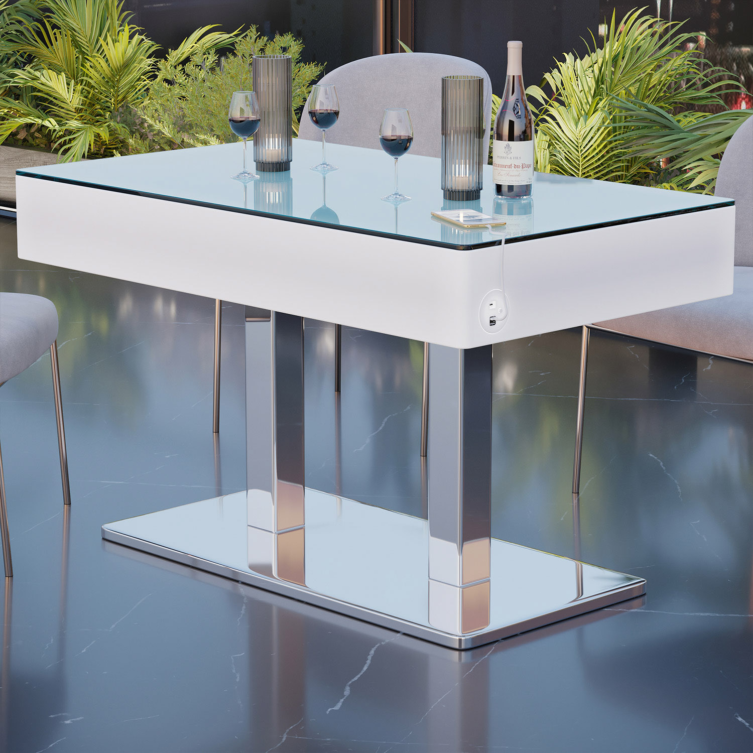Coozy je všestranný LED klubový stolík vhodný na vnútorné aj vonkajšie použitie. Vďaka svojmu štvorcovému tvaru a kombinácii polykarbonátu a sklenenej dosky je nielen mimoriadne stabilný, ale aj skutočne pútavý, a dodá vášmu klubu, baru alebo terase špeciálnu atmosféru. Rám bistro stolíka z brúsenej nehrdzavejúcej ocele dodáva Coozy elegantný dizajn, ktorý harmonicky zapadne do každého prostredia.