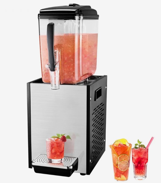 Tento komerčný dávkovač nápojov má nádrž s objemom 12 l a pojme veľké množstvo nápojov. Je vybavený vylepšeným výlevkom s veľkým priemerom pre plynulé a jednoduché nalievanie nápojov s malými časticami, ako je kokosová šťava a ovocná dužina. Gumové tesnenie zabraňuje rozliatiu.