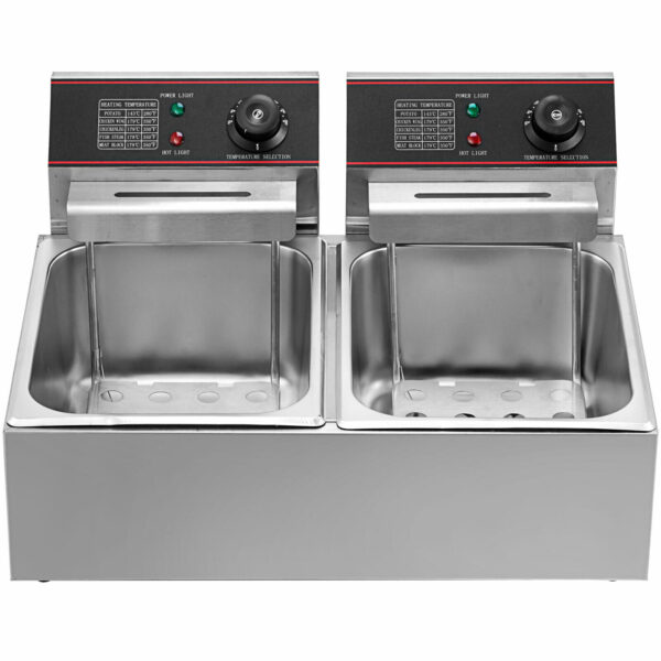 Fritéza je vyrobená z odolnej ušľachtilej ocele s dlhou životnosťou. Zariadenie má výkon 2×2500 wattov. Požadovaná teplota sa dá ľahko nastaviť vďaka plne automatickej kontrole stálosti teploty. Elektrická fritéza disponuje fritovacou nádržou s objemom 2×6 litrov. K fritéze dostanete aj darček.