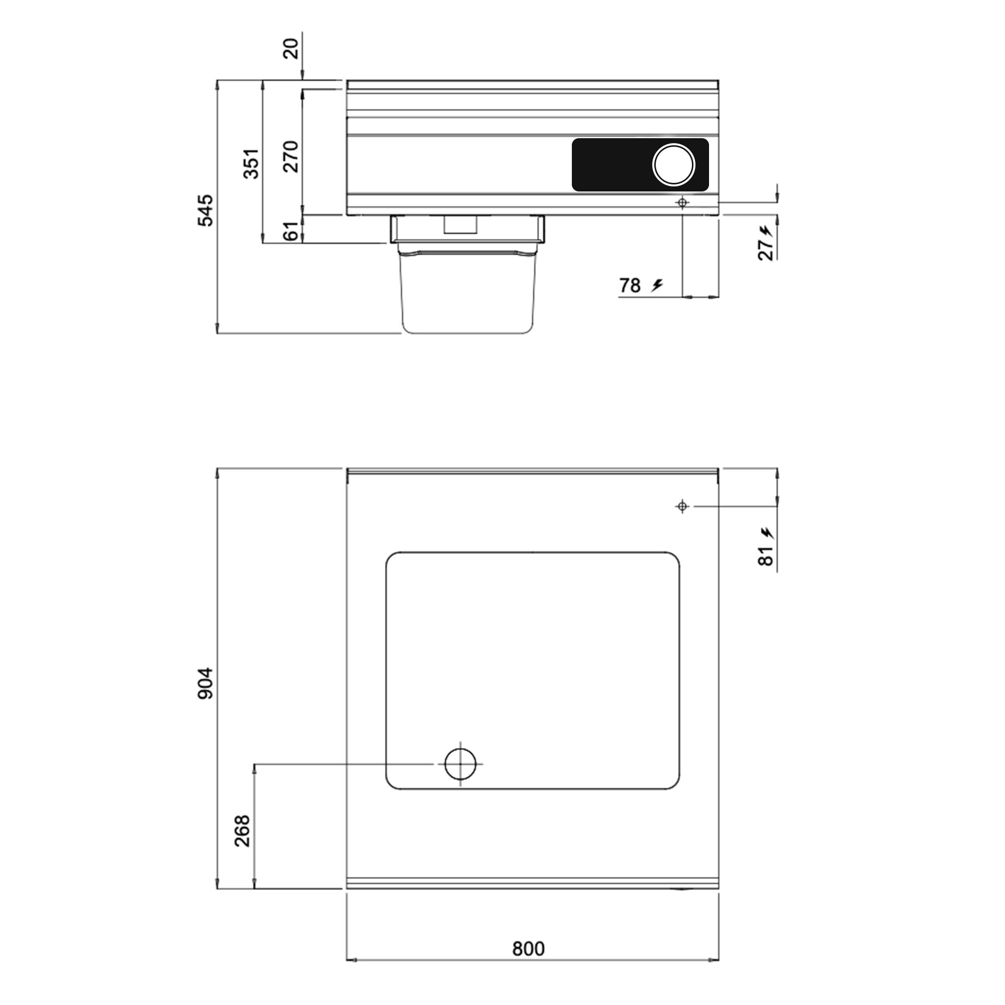- Vonkajšie rozmery Š x H x V: 800 mm x 900 mm x 545 mm