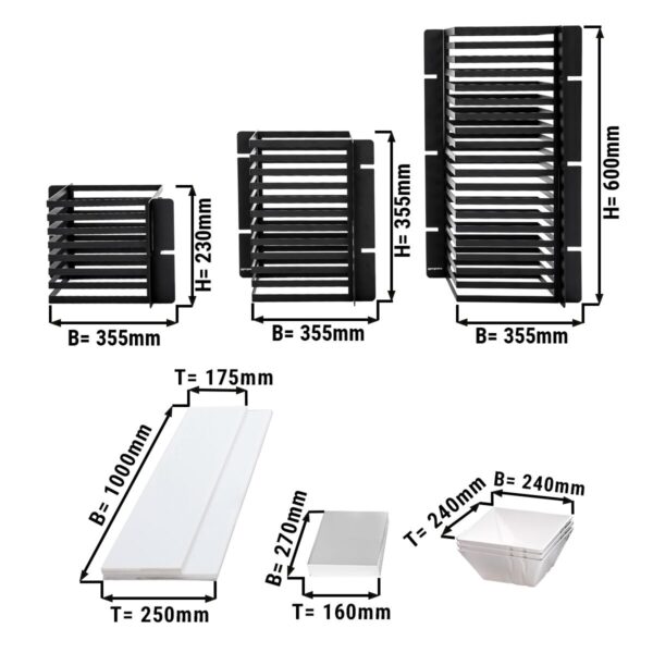 - Vonkajšie rozmery: Š x H x V: 355 mm x 355 mm x 600 mm