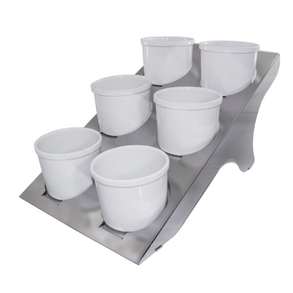 Etažér / bufetový stojan – chróm – vrátane 6 melamínových misiek – okrúhle