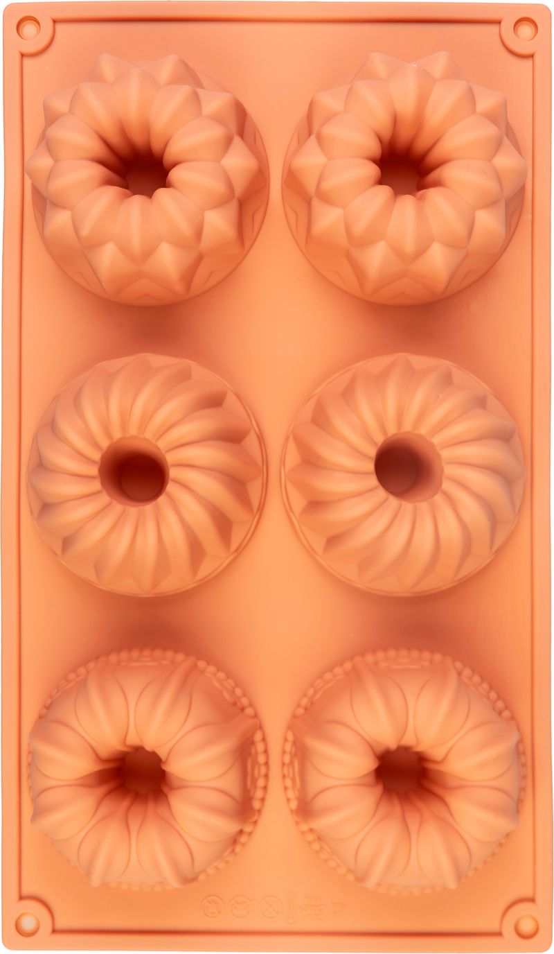 Vyrobená zvysokokvalitného silikónu, ktorý jeflexibilný, nepriľnavý a odolný voči vysokým teplotám, umožňuje jednoduché vyberanie upečených dezertov bez poškodenia ich tvaru. Materiál jebezpečný pre styk s potravinami, vhodný do rúry, mikrovlnnej rúry, mrazničky aj umývačky riadu.