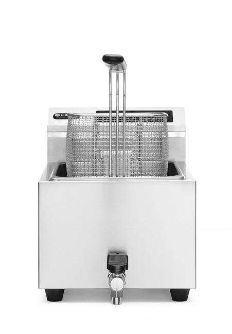 Fritéza Profi Line s výpustným kohútikom od Hendi je zariadenie, ktoré vám umožní pripraviť mnoho druhov občerstvenia, ako sú chrumkavé hranolky, zelenina alebo jarné rolky. Ideálne pre bary a reštaurácie s rýchlym občerstvením. Prístroj s veľkou komorou s objemom 8 litrov a výpustným kohútikom vám umožní rýchlo pripraviť veľké množstvo smažených jedál a občerstvenia.