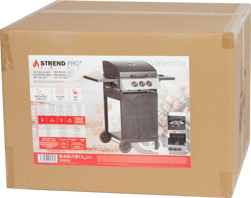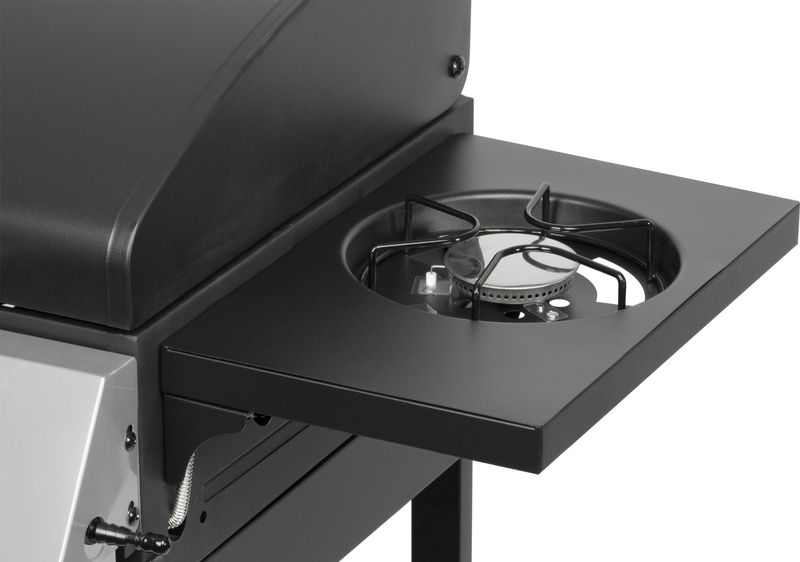 Gril je plynový, s dvomi horákmi pod vrchným kovovým krytom a jedným bočným horákom. Bočný horák je možné použiť pre jednoduché samostatné varenie. Na vrchnom kovovom kryte je umiestnený teplomer z nehrdzavejúcej ocele, vďaka ktorému nie je nutné neustále kontrolovať pripravované jedlo. Varná mriežka, ktorá sa nachádza pod krytom je vyrobená zo smaltovanej ocele, čím sa veľmi ľahko čistí, rovnako ako aj zvyšok povrchu. Pre funkčnosť je potrebné pripojenie štandardnej plynovej fľaše s hmotnosťou náplne do 11 kg. Po jej pripojení stačí jednoducho otočiť gombíkom pre horák, ktorý chcete rozohriať. Rozmery grilu sú 97 x 60 x 100 cm a jeho hmotnosť je 17,5 kg. Pre jednoduchší presun sa na spodných nohách nachádzajú dve kolieska. Po umiestnení plynovej fľaše je potrebné skontrolovať pripojenie. Umiestnenie grilu je nutné výhradne vo vonkajších priestoroch.