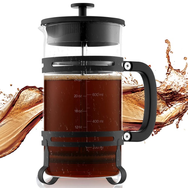 - Číre sklo: Tento kávovar French press vyrobený z vysoko kvalitného borosilikátového skla je odolný voči teplu, nárazom a krištáľovo čistý – takže si môžete celý proces varenia vychutnať so zlepšenou viditeľnosťou a zážitkom.