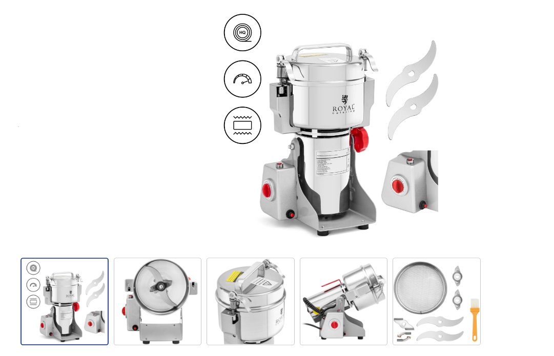 Chcete svojim hosťom servírovať chutné jedlo s čerstvými surovinami a bohatou chuťou? Elektrický mlynček na korenie od spoločnosti Royal Catering je ideálnym pomocníkom, ak chcete rýchlo a presne pomlieť korenie alebo bylinky. Vďaka veľkej kapacite 2000 g je elektrický mlynček na bylinky vhodný do domácich kuchýň aj na komerčné použitie.