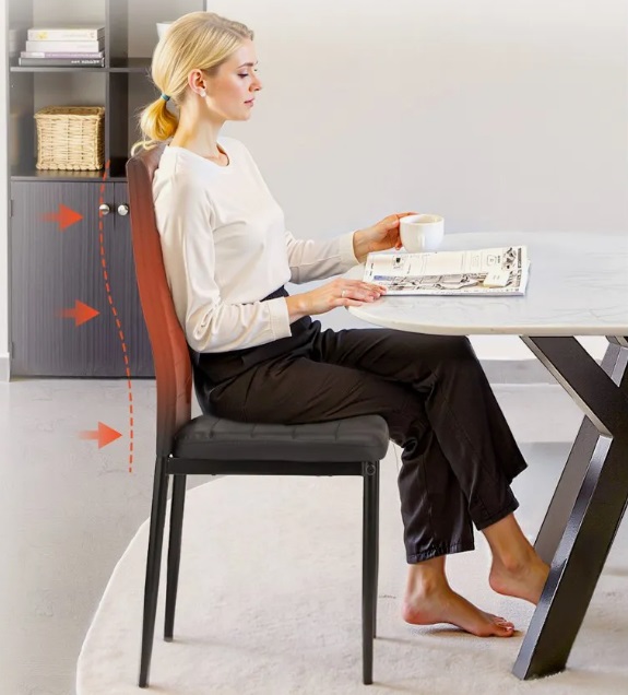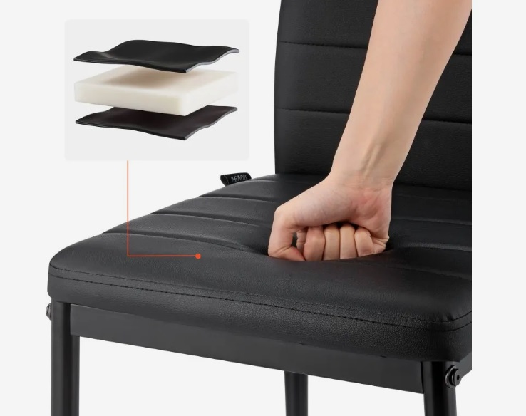 Ergonomické pohodlné polstrovanie: Špongia s vysokou hustotou ponúka trvalú oporu. Zosilnené sedadlo a vyššie polstrovanie operadla sady 4 jedálenských stoličiek kopírujú ergonomické krivky. Pohodlné stoličky zaisťujú celodenné pohodlie pri práci, hraní hier alebo relaxácii.