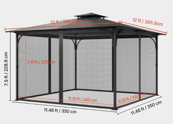 - Kompatibilné rozmery altánku – 365,8 x 365,8 x 228,6 cm