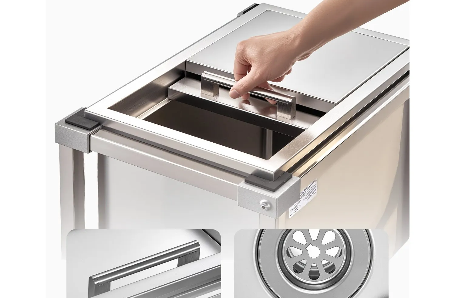 • Materiál z nehrdzavejúcej ocele: Chladič ľadu má certifikát NSF. Je vyrobený z nehrdzavejúcej ocele, vďaka čomu je odolný a odolný voči hrdzi. Interiér využíva integrovaný, plne zváraný proces, čo výrazne znižuje riziko únikov.