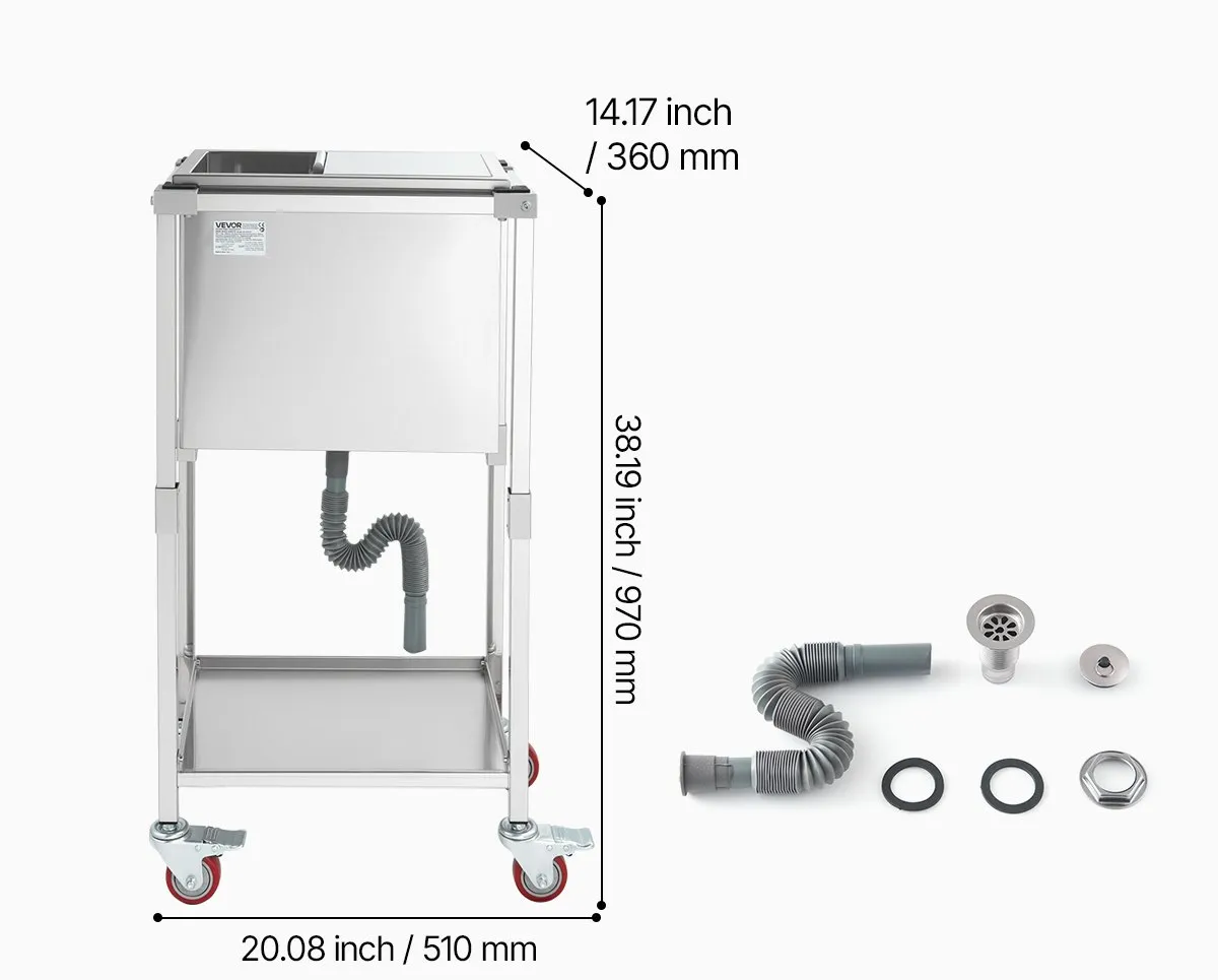 × Nádoba na ľad (51 x 36 x 97 cm), chladič na nápoje z nehrdzavejúcej ocele na kolieskach, chladiaca nádoba na vonkajšie použitie s poličkou, do párty baru v záhrade alebo na terase