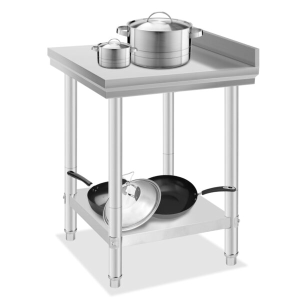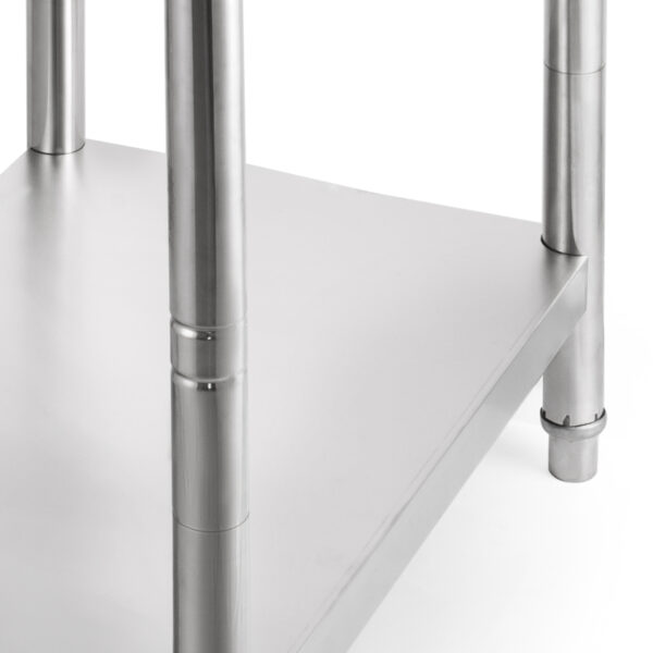 Tento kvalitný nerezový pracovný stôl spĺňa vysoké nároky. Odporúčame ho do všetkých profesionálnych a luxusných kuchýň, ale nájde svoje využitie aj v iných najrôznejších prostrediach. Pod priestrannou pracovnou plochou sa nachádza veľký odkladací regál s nosnosťou až 50 kg.