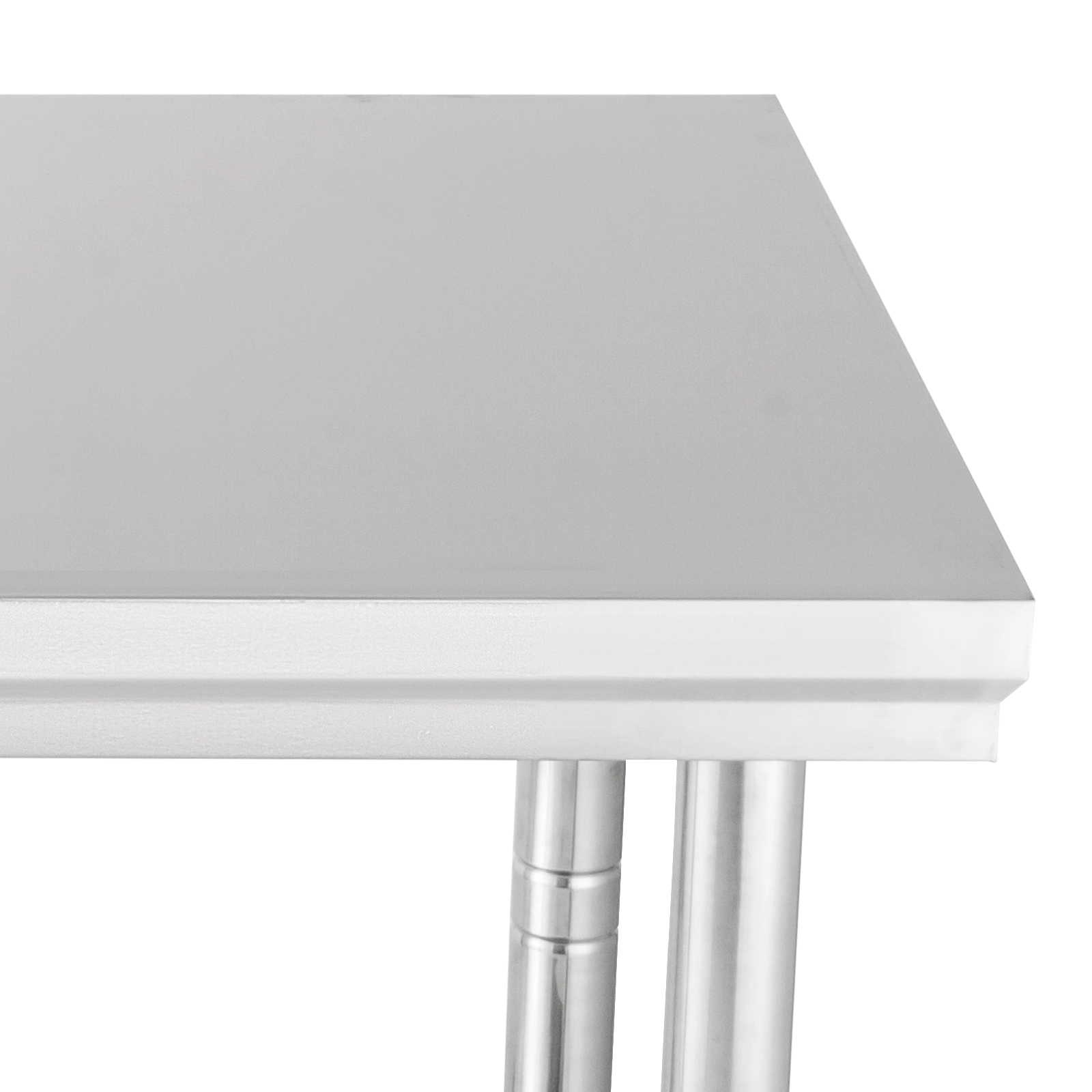 Tento kvalitný nerezový pracovný stôl spĺňa vysoké nároky. Odporúčame ho do všetkých profesionálnych a luxusných kuchýň, ale nájde svoje využitie aj v iných najrôznejších prostrediach. Pod priestrannou pracovnou plochou sa nachádza veľký odkladací regál s nosnosťou až 50 kg.