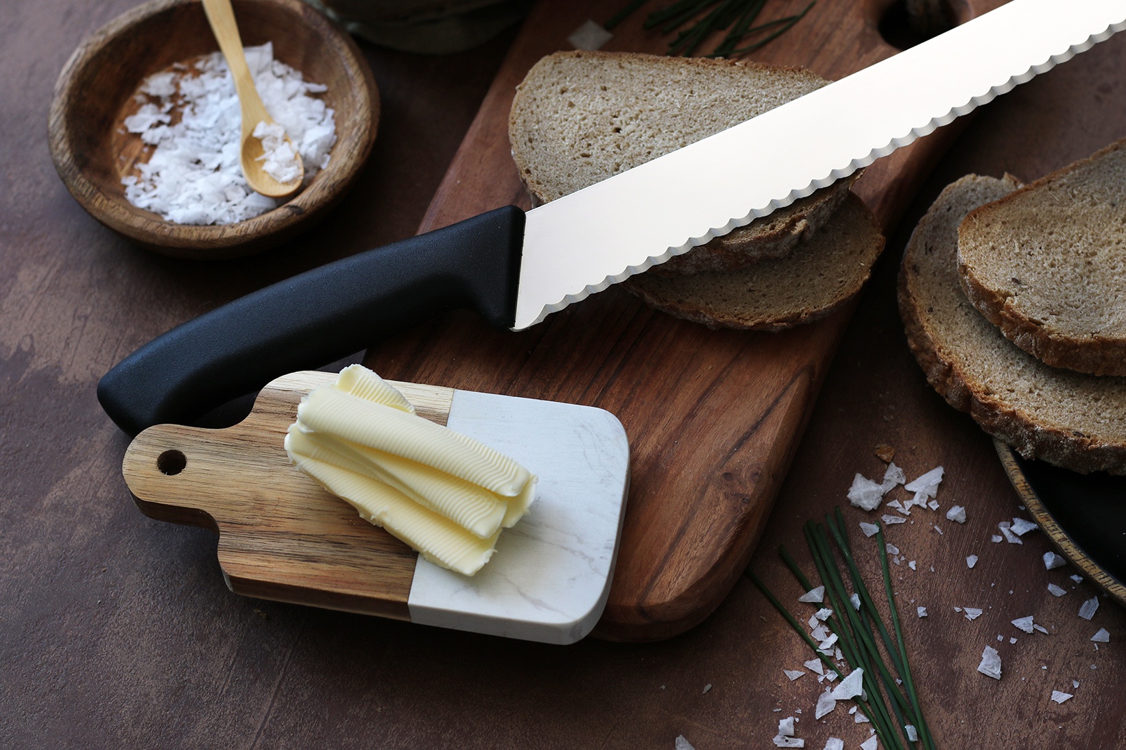 - Vlnitá a dokonale ostrá čepeľ v dĺžke 26 cm pre ľahké krájanie.