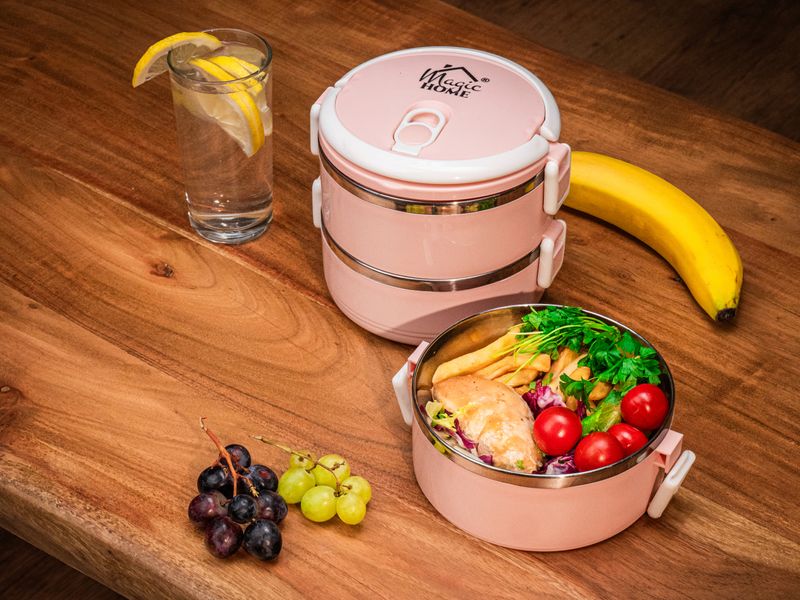× Obedár MagicHome LB933, 3 dielny, 3x 1500 ml, ružový, 20x15x6,2 cm