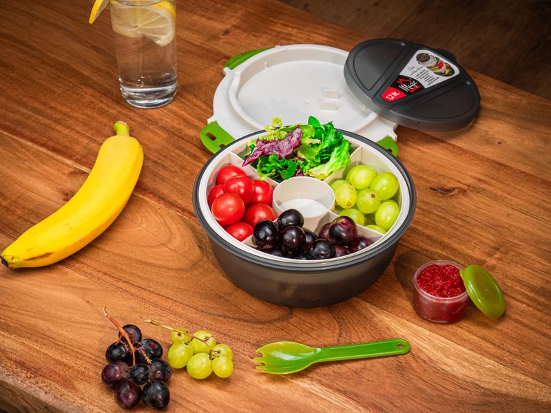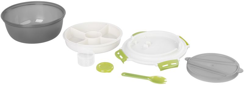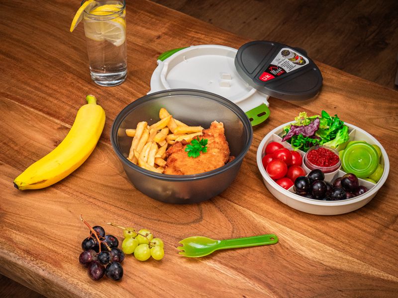 Plastový obedár MagicHome je určený na prenášanie potravín a jedál. Obsahuje vidličku/lyžicu a misku s priehradkami, prostredníctvom ktorých budete mať rozdelené jednotlivé pokrmy. Obedár má 1,2 litrový objem. Plastový obedár môžete umývať v umývačke riadu, odkladať v chladničke i mrazničke. Rozmer : 21,1×9,7 cm.
