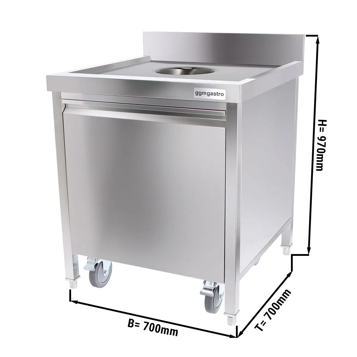 • Odpadkový kôš (štvorcový) s rolovacím kontajnerom a zadným splashom