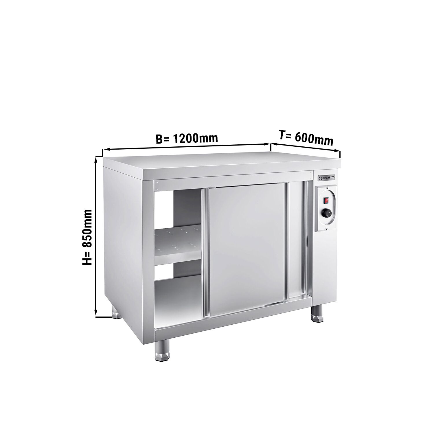 - Außenmaß B x T x V: 1 200 mm x 600 mm x 850 mm
