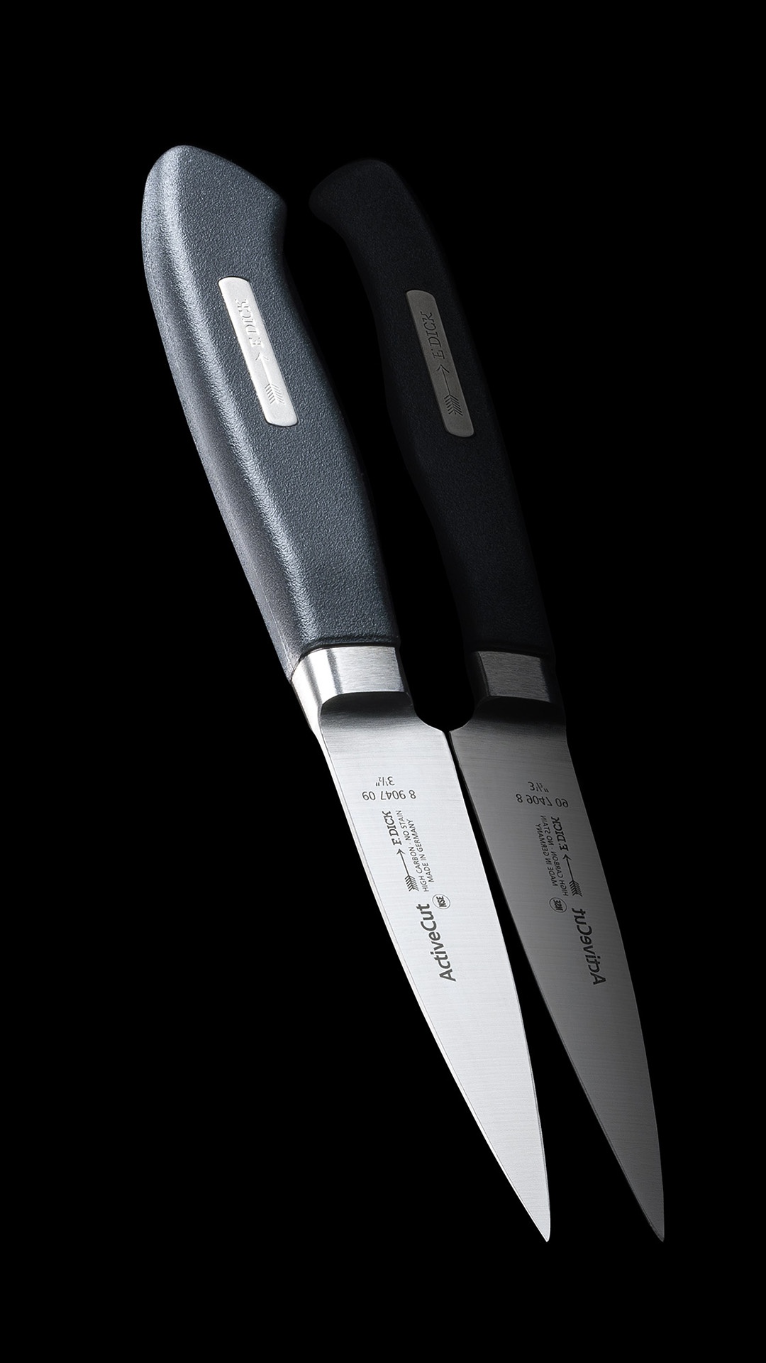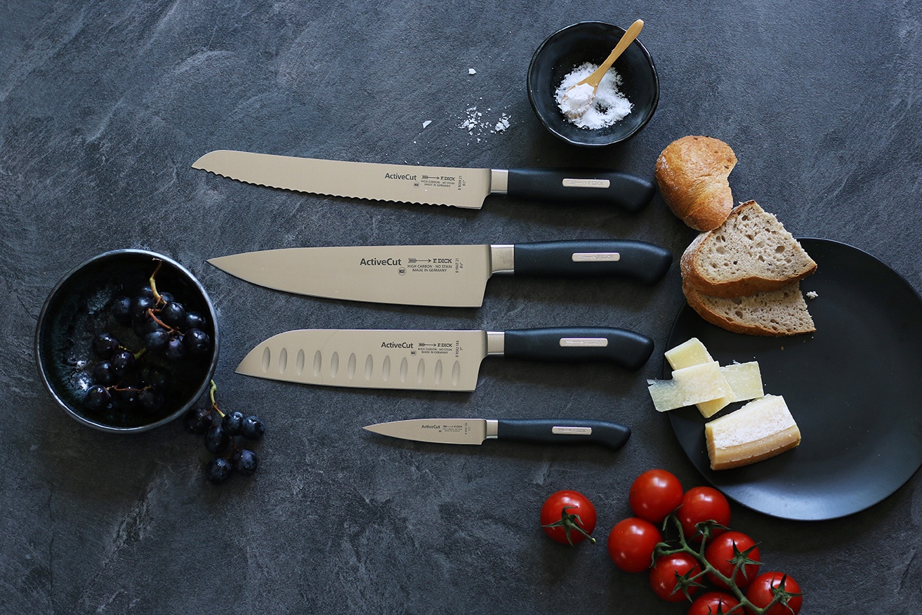 Kované nože klasických tvarov zo série ActiveCut majú rukoväť z vysoko odolného plastu, ktorá je s čepeľou noža spojená bezškárovo . Nože sú