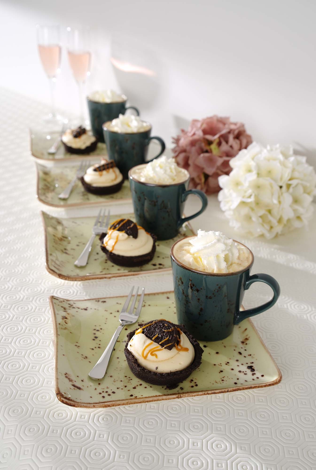 Bohatá kolekcia ručne zdobeného porcelánu v štyroch šťavnatých farbách. Spojte oranžové, modré, tmavomodré a sivé prvky pre jedinečný a prekvapivý vzhľad stola a jedlo bude vyzerať rovnako dobre, ako bude chutiť. Riad je trvácny a odolný, navrhnutý tak, aby vydržal útrapy používania v profesionálnej kuchyni.