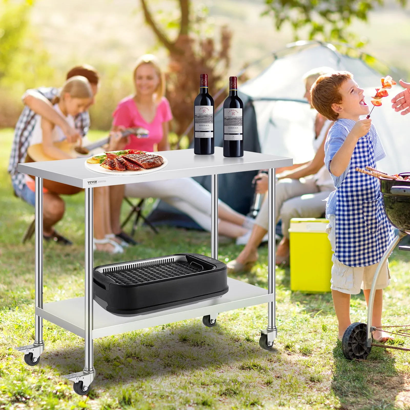 - Vysokokvalitná nehrdzavejúca oceľ: Tento pracovný stôl s rozmermi 610 x 1219 x 954,6 mm (24 x 48 x 38 palcov) je vyrobený z nehrdzavejúcej ocele SUS201, čo sa týka dosky, políc a nôh. Ponúka vynikajúcu odolnosť voči hrdzi, elegantný vzhľad a hladký povrch, ktorý sa ľahko čistí jedným utretím.
