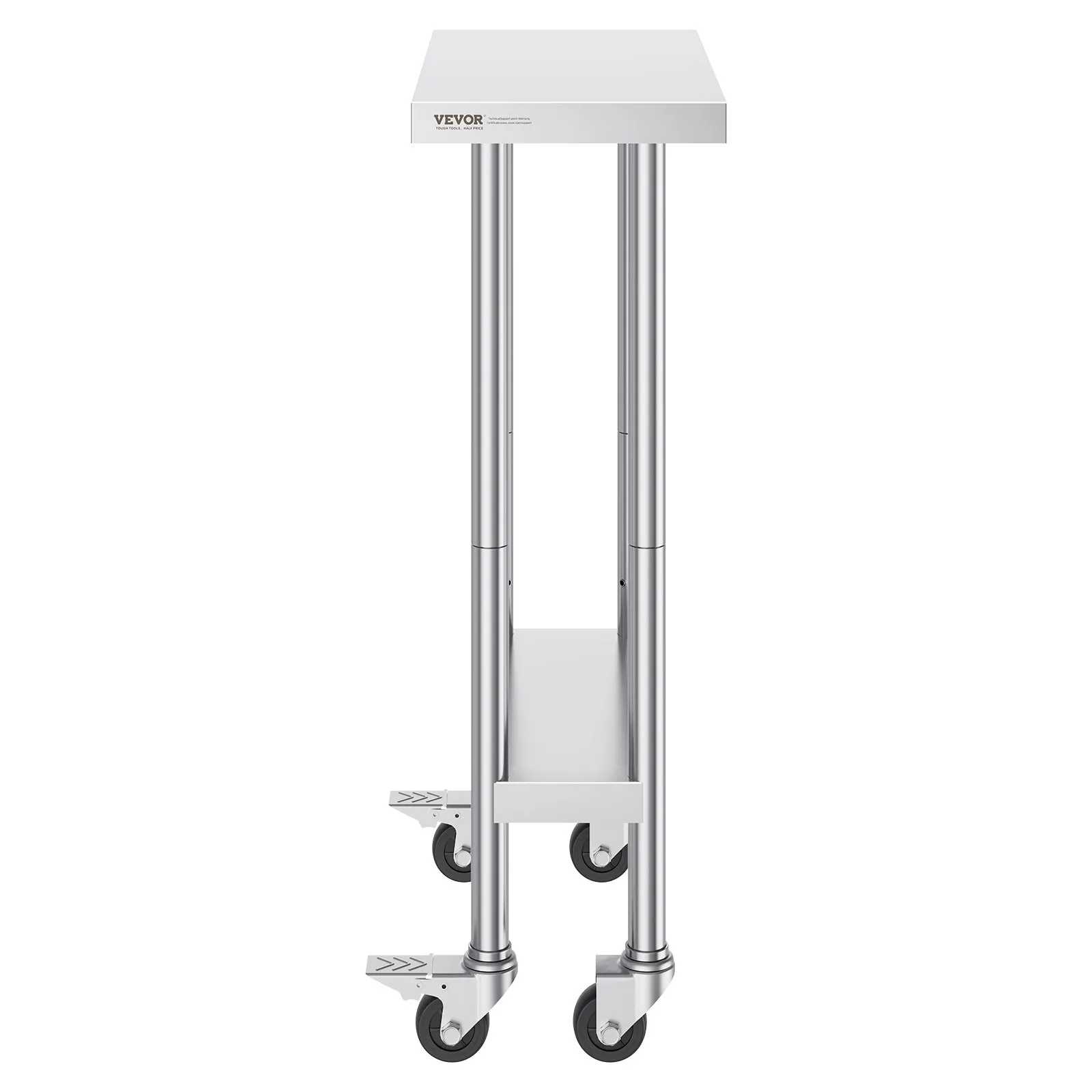 - Vysokokvalitná nehrdzavejúca oceľ: Tento pracovný stôl s rozmermi 610 x 350 x 954,6 mm (24 x 12 x 38 palcov) je vyrobený z nehrdzavejúcej ocele SUS201, čo sa týka dosky, políc a nôh. Ponúka vynikajúcu odolnosť voči hrdzi, elegantný vzhľad a hladký povrch, ktorý sa ľahko čistí jediným utretím. Je certifikovaný podľa NSF, spĺňa prísne zdravotné normy a zaisťuje trvalú ochranu vášho zdravia.