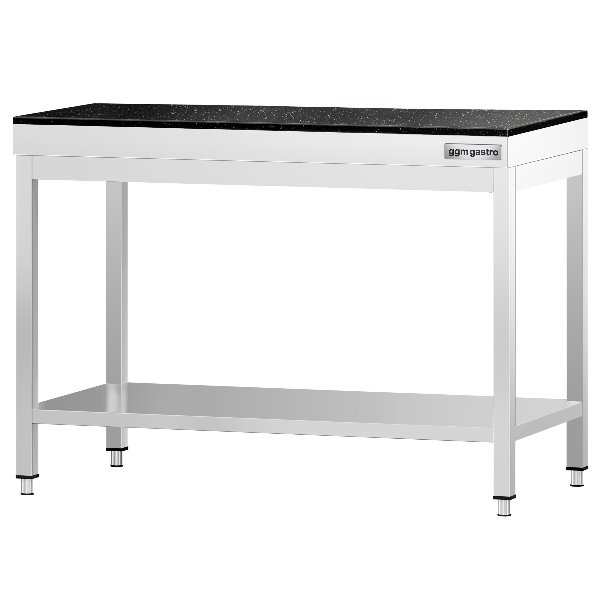 Pracovný stôl z nehrdzavejúcej ocele s žulovou doskou.