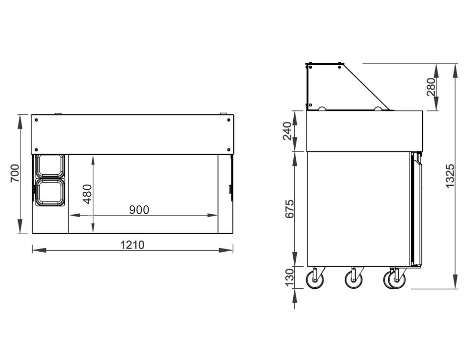 - So zabudovaným chladiacim nástavcom – pre 9x GN 1/6 nádob