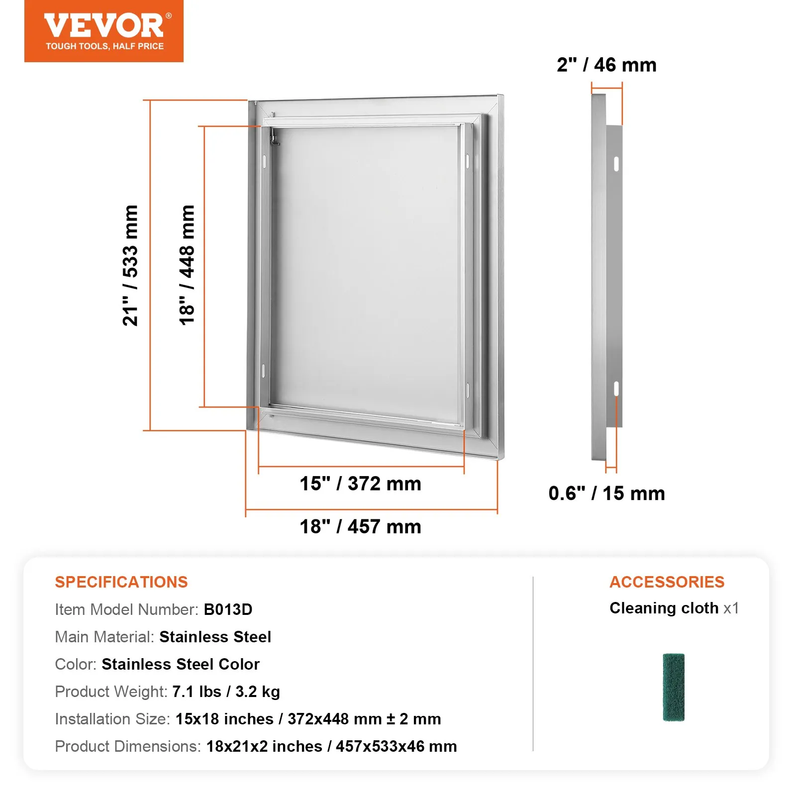 - Presné otváranie: Celkové rozmery: 457 x 533 x 46 mm / 18 x 21 x 2 palce, montážne rozmery: 14 x 21 palcov / 347 x 525 mm. Pre lepší výkon sa odporúča počítať s dodatočnými 2 mm. Tieto dvierka, špeciálne navrhnuté pre vonkajšie kuchyne a grilovacie ostrovčeky, dodávajú vášmu varnému priestoru nádych elegancie. Vďaka presným rozmerom sa s nimi ľahko pracuje, inštalujú sa aj odstraňujú. Sú dostupné v rôznych veľkostiach a povrchových úpravách, sú ideálne do vnútorných/vonkajších kuchýň a všetkých ostatných vonkajších poveternostných podmienok.