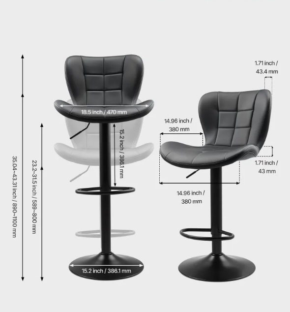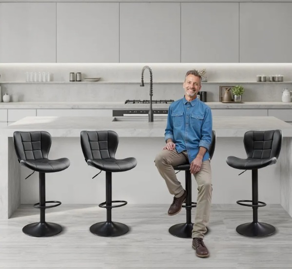 Praktická sada: Sada obsahuje 4 barové stoličky, každá s rozmermi 18,50 x 21,06 x 35,04/43,31 palca, s výškou sedadla 23,2 – 31,5 palca. Táto barová stolička je ideálna pre väčšie rodiny alebo otvorené kuchyne, ktoré umožňujú jednoduchý prechod medzi stolovaním, spoločenskými aktivitami a kancelárskymi aktivitami.