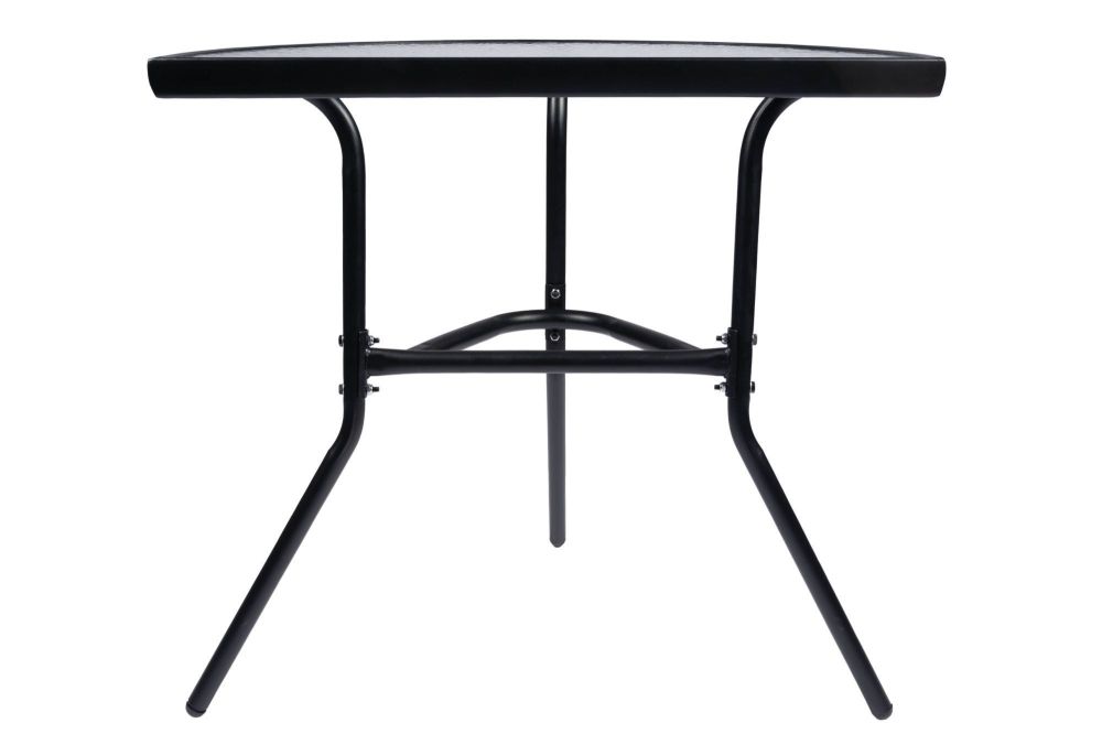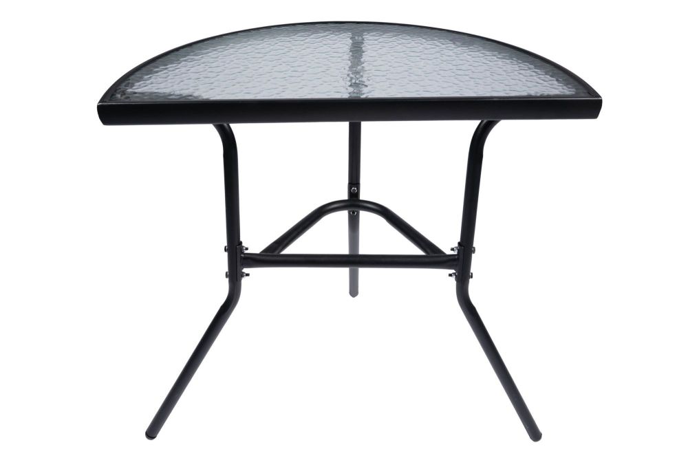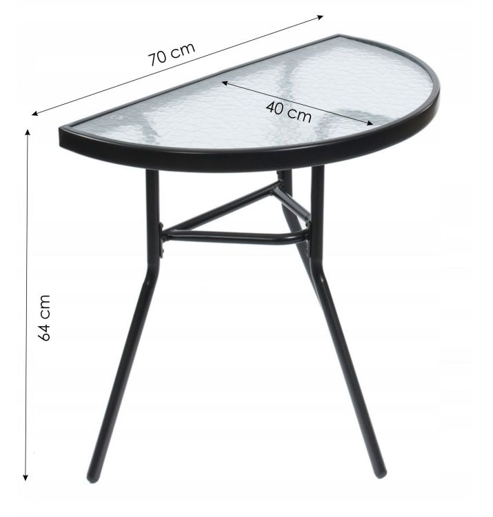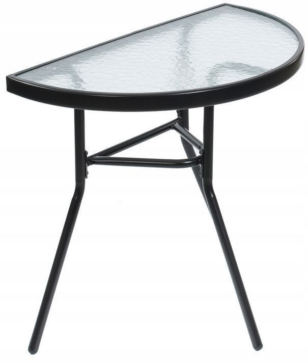 Tento čierny sklenený konferenčný stolík je praktický kus nábytku s moderným dizajnom, ideálny na balkón, terasu alebo verandu. Má polkruhovú dosku z odolného tvrdeného skla so vzorom vlniacej sa vody , ktoré mu dodáva jedinečný charakter. Jeho stabilná konštrukcia s práškovo lakovanými oceľovými profilmi zaisťuje odolnosť voči poveternostným vplyvom a jednoduché čistenie. Stôl je ideálny na vonkajšie aj vnútorné použitie a perfektne sa hodí do malých priestorov. Doska stola má rozmery 70 x 40 cm a výška stola je 64,5 cm .