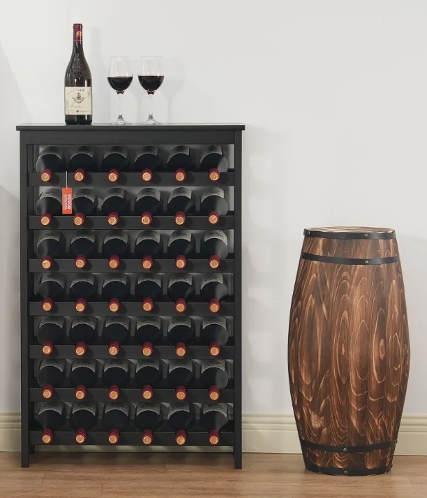 Dostatok priestoru: Otvory s priemerom 62 mm (2,6 palca) pojmú štandardné (750 ml) fľaše vína, ako napríklad Bordeaux a Champagne. Tento bambusový stojan na víno pojme 90 % veľkostí fliaš dostupných na trhu. Priestor medzi policami bol zväčšený na 1,9 cm, čo umožňuje stohovanie fliaš Pinot Noir alebo Champagne.