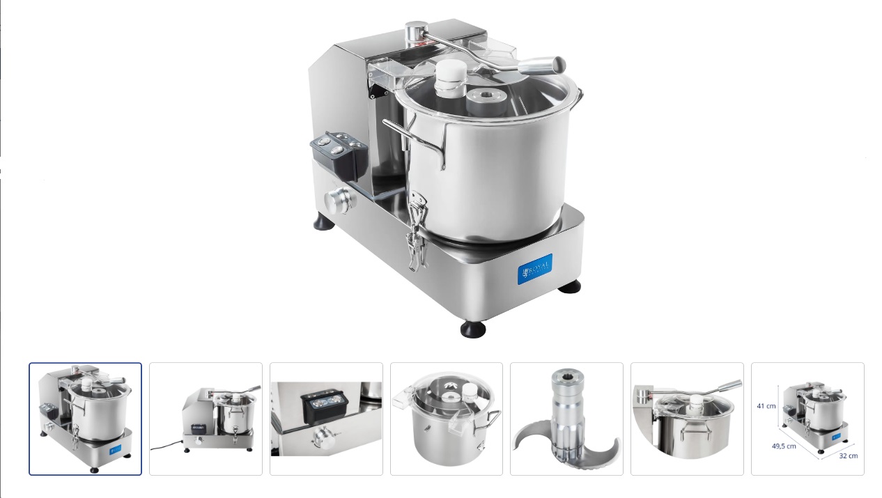 Stolová fréza RCKC-6000 od spoločnosti Royal Catering bola navrhnutá na použitie v gastronómii a zaujme extrémne vysokým pracovným objemom a výkonom 750 W. Tento profesionálny prístroj je ideálny na sekanie, mixovanie a krájanie mäsa, zeleniny, byliniek, syra atď. Ä., takže môžete pripravovať rôzne polievky, paštéty, detskú stravu a mnoho ďalšieho. Užite si výhody funkčného, efektívneho a odolného produktu!Vďaka svojmu atraktívnemu a praktickému dizajnu sa kuchynský robot hodí do každej modernej kuchyne. Skriňa a misa na prípravu sú vyrobené z vysokokvalitnej nehrdzavejúcej ocele a zaručujú rýchle a jednoduché čistenie. Štyri protišmykové gumové nožičky na spodnej strane stroja zaisťujú bezpečnú oporu na pracovnej ploche.Nôž v tvare srpu je ideálny na miesenie, mletie alebo hrubé sekanie potravín pomocou dvoch čepelí. Čepele sú vyrobené z nehrdzavejúcej ocele a hriadeľ noža je vyrobený z eloxovaného hliníka, takže nôž je bezpečný pri krájaní kyslých alebo slaných potravín. Špeciálne spracovanie čepele zaručuje vždy dokonalý rez bez negatívneho vplyvu na krájané potraviny.Sekáčik na mäso od spoločnosti Royal Catering sa ľahko a intuitívne používa. Zariadenie sa dá zapnúť a vypnúť pomocou dvoch tlačidiel. Otáčky noža možno nastaviť v rozmedzí 1 100 až 2 800 otáčok za minútu pomocou regulátora otáčok. Hrubý, stredne jemný alebo jemný – sami si určíte ideálny stupeň jemnosti a spracujete širokú škálu potravín v priebehu niekoľkých sekúnd.Odnímateľná nádoba na prípravu má celkový objem 6 litrov a pracovný objem 3 litre. Držadlá na boku hrnca zaručujú bezpečnú a pohodlnú prepravu. Plastový kryt chráni pred prípadným postriekaním, znižuje prevádzkový hluk a poskytuje optimálnu kontrolu. Plniaci otvor integrovaný vo veku slúži na neskoršie pridávanie prísad a uzatvára sa zátkou.Dvojité bezpečnostné zariadenie chráni pred nebezpečenstvom spôsobeným náhodným otvorením viečka a zaručuje trvalý hladký chod stolného krájača. Zariadenie je pripravené na použitie až vtedy, keď je viečko v správnej polohe a keď je aktivovaná otočná páčka na zaistenie viečka. Špeciálny zacvakávací zámok, ktorý je pripevnený k hrncu a spotrebiču, zabezpečuje dodatočnú stabilitu a bráni nadmernému pohybu počas používania. Pracovný cyklus je trojminútový s desaťminútovou prestávkou. Pri prekročení prevádzkovej doby sa zariadenie môže automaticky vypnúť. V takom prípade odpojte stolný krájač na 10 minút od