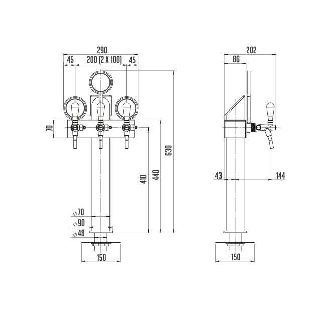 - Výčapný stojan 3-kohútový tvaru T